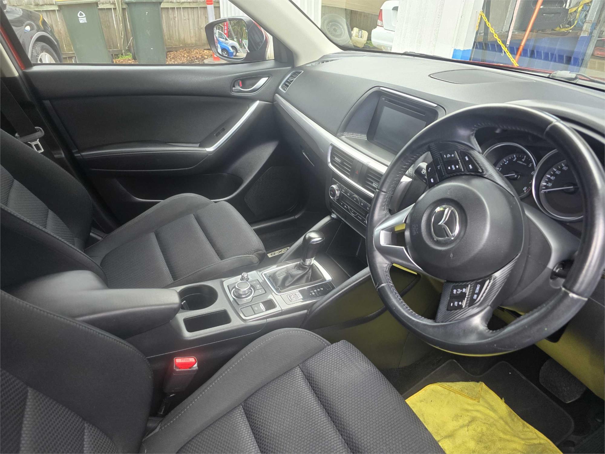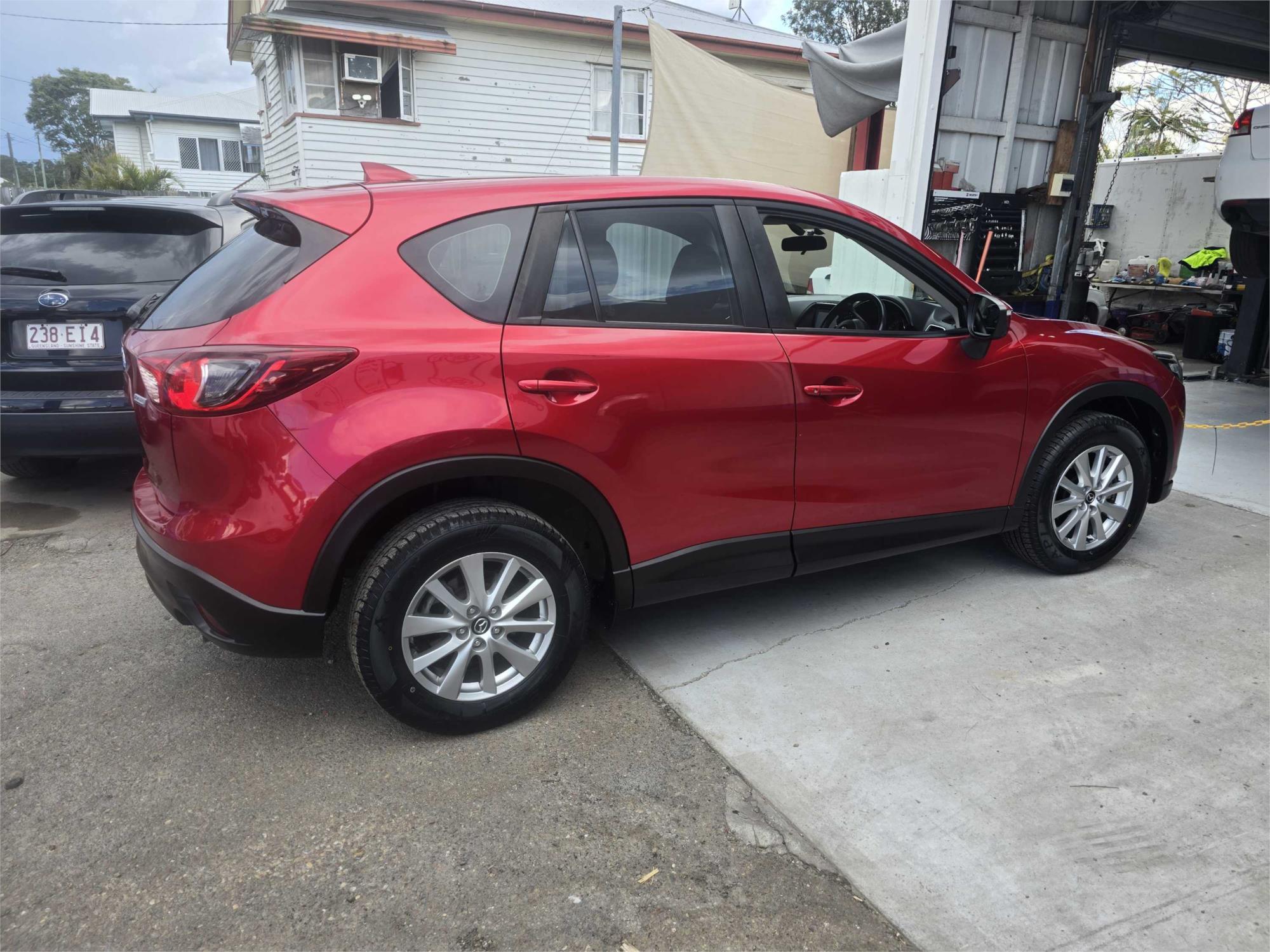 Looking for a reliable and family-friendly SUV? Check out this 2015 Mazda CX-5 Maxx Sport (4×4) in a stunning red color! With features like dual front airbags, cruise control, reversing camera, and satellite navigation, this vehicle has everything you need for a comfortable and safe ride.
